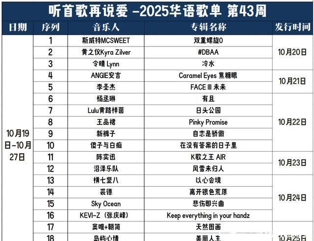 2025年第43周,本周华语乐坛依然热闹,不仅有陈奕迅重置金曲压制,更有多张优质专辑问世。
